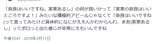 ところでぼくは、大阪に来たネットのオタクに「なんで隣の奈良には来ねえんだよ!!」と当たり屋じみた難癖をつけています。はた迷惑ですね。